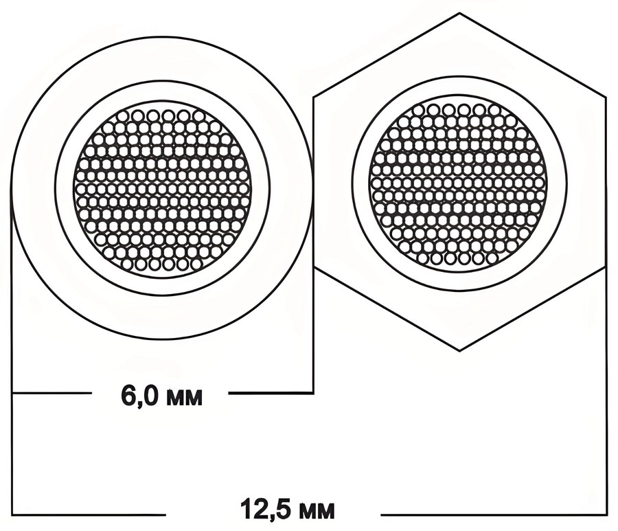 - Общая площадь поперечного сечения каждого проводника составляет 3,31 мм2, что близко к AWG 12.