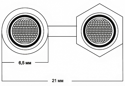 - Общая площадь поперечного сечения каждого металлического провода составляет 5,23 мм2, что соответствует AWG 10. Емкость между двумя выводами составляет 32,5 пФ/метр.