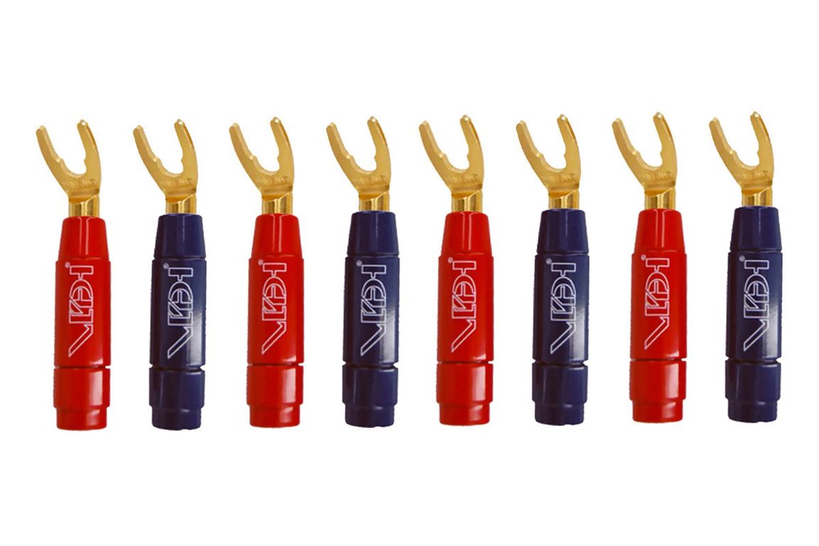 Ввинчивающиеся клеммы типа «банан» и угловая «лопатка» (вилка) предназначены для установки в соединительные разъемы WBT. Обе клеммы обладают превосходными свойствами сопряжения и минимальным контактным сопротивлением.