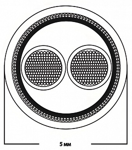 - Балансная конструкция состоит из двух центральных проводников 12 жил х 0,15 мм (AWG 24 – 0,2 мм2 каждый проводник, с изоляцией из вспененного полипропилена красного и черного цветов).