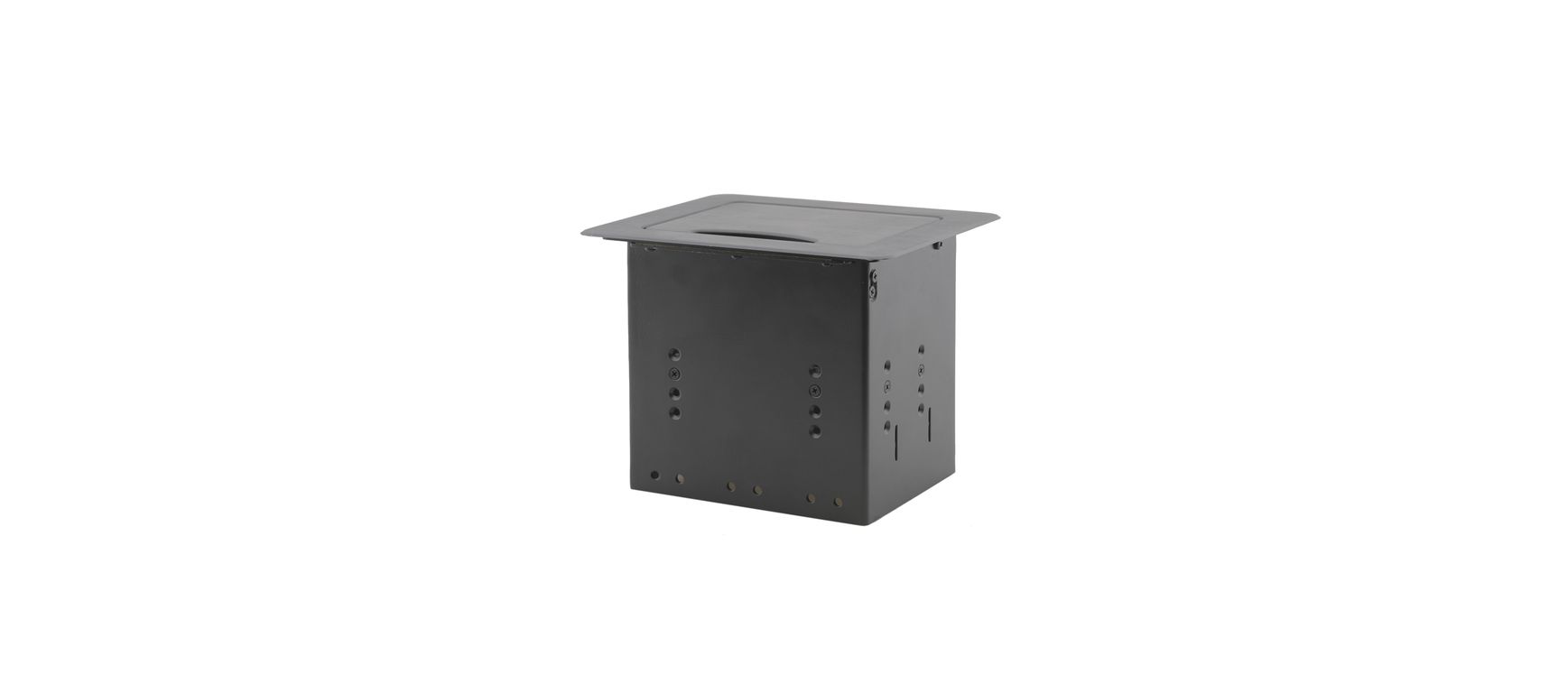 TBUS-3XL - корпус модульной системы с откидной крышкой, легко встраиваемый в различные предметы мебели, например, столешницу или панель трибуны. Законченная система TBUS включает корпус, внутреннюю рамку, сетевую розетку (розетки), модули-вставки и/или малогабаритные приборы и сетевой шнур. ПРИМЕЧАНИЕ: Рамки, розетки, сетевой шнур и модули-вставки приобретаются отдельно от модуля.