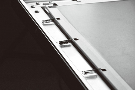 - Идеально плоское полотно с основой—материал PVC. Полотно равномерно натянуто по периметру рамки, что препятствует возникновению неровностей и волн во время эксплуатации.