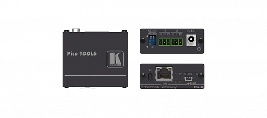 FC-6 — компактный преобразователь интерфейса Ethernet в сигналы RS-232 (двунаправленный) или ИК. Прибор позволяет управлять устройствами посредством интерфейса RS-232 и сигналами ИК через локальную сеть Ethernet. Преобразователь поддерживает подключение нескольких удаленных клиентов для управления двумя устройствами по протоколу RS-232 или четырьмя устройствами с интерфейсом ИК, например, масштабаторами, удаленными дисплеями или проигрывателями DVD.