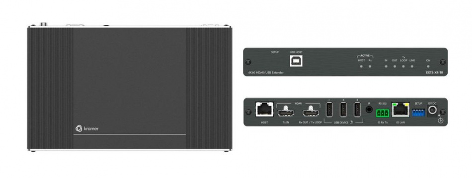 EXT3-XR-TR — передатчик/приёмник сигналов HDMI c разрешением до 4K@60 Гц (4:4:4), а также сигналов USB, Ethernet, RS-232 и ИК по кабелю витой пары HDBaseT 3.0. В режиме передатчика устройство EXT3-XR-TR преобразует все входные сигналы в сигнал HDBaseT 3.0, передаваемый по кабелю витой пары. В режиме приёмника EXT3-XR-TR преобразует принимаемый по кабелю витой пары сигнал HDBaseT 3.0 обратно в исходные сигналы. Максимальное расстояние передачи составляет 100 м для видеосигналов с разрешением до 4K@60 Гц (4:4:4).