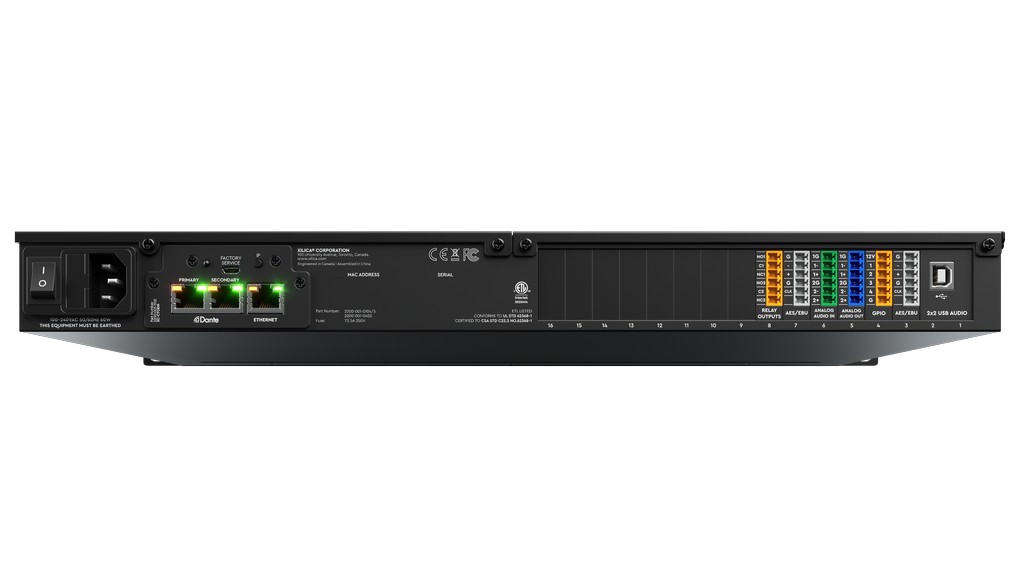 - Поддержка сетевого аудио Dante™ с разрешением до 64x64 каналов.